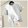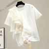 Summer Holiday O-neck Tops Women Ruffled Stitching Blouse Fashion Short Sleeve Tunics Casual Loose Solid Blusa Femme