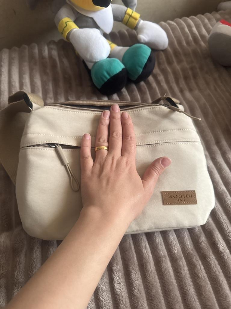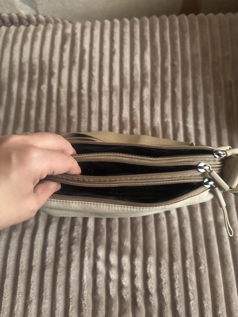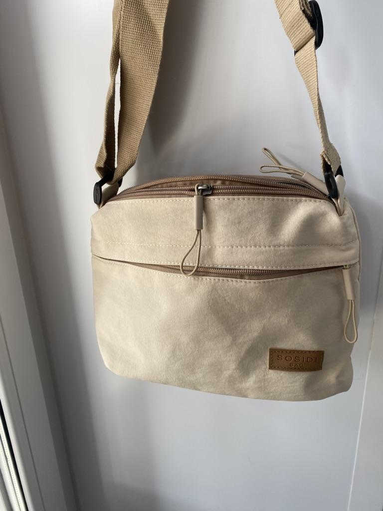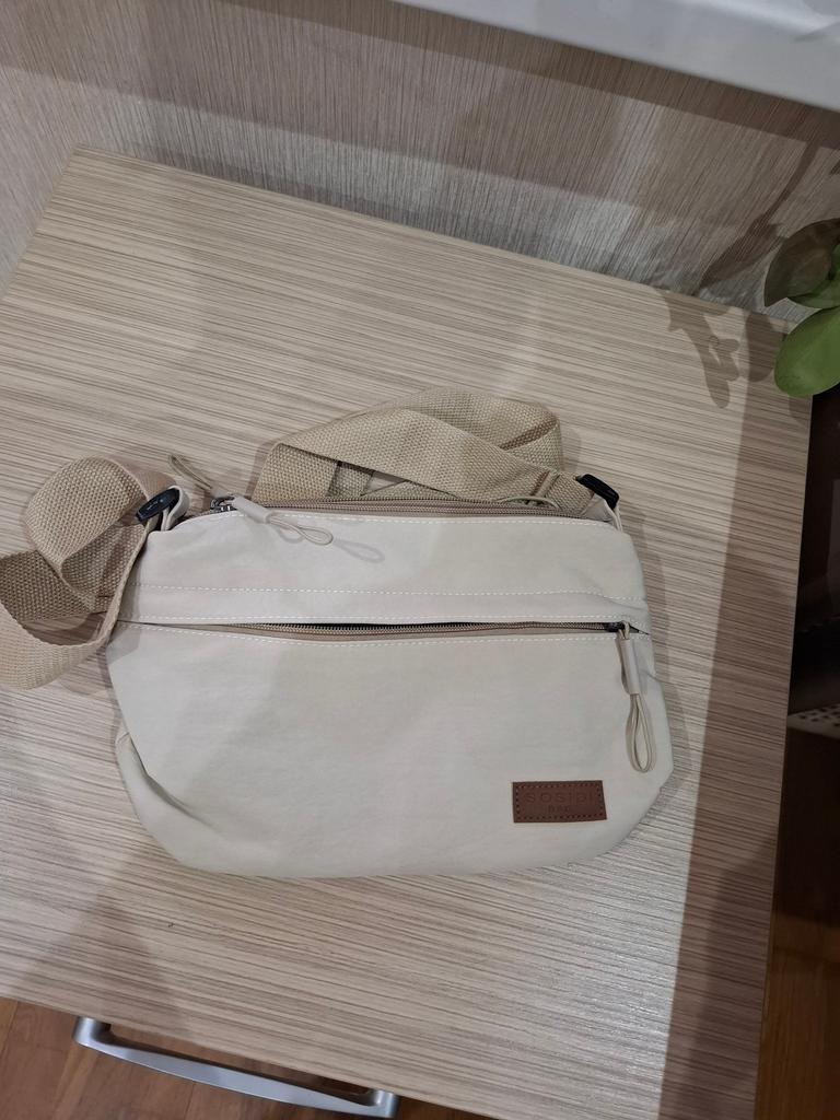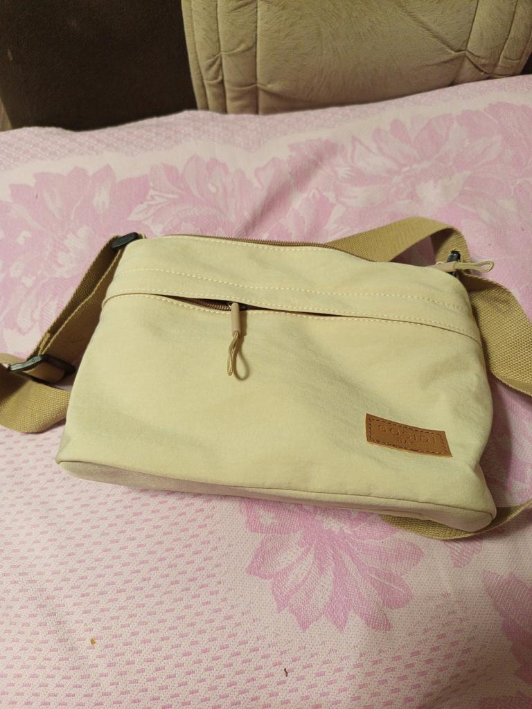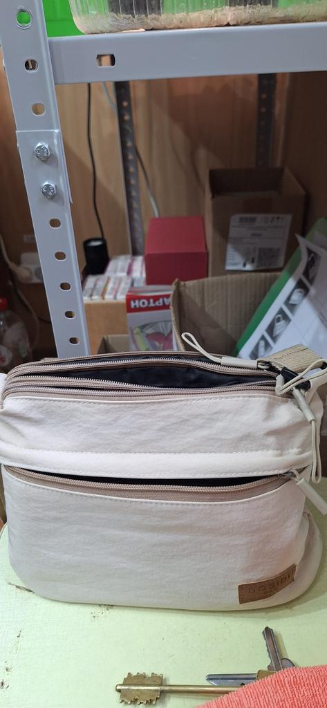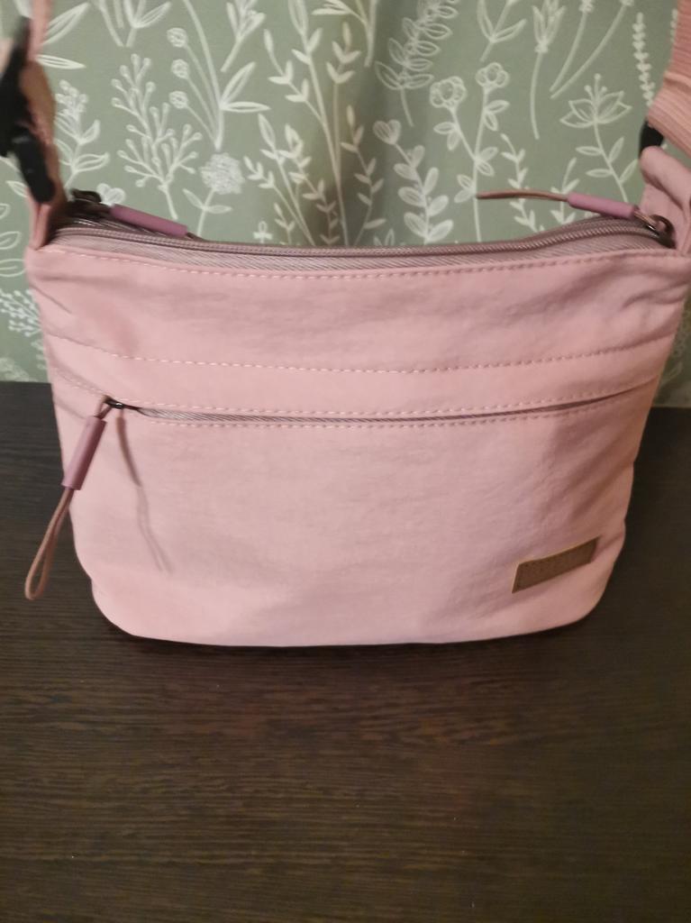 The bag is bombastic, has three large zippered pockets, two side pockets, one small zippered pocket inside the middle compartment, the color is pleasant, the fabric is not easily soiled, the strap is adjustable, I will order more in other colors, the price is pleasant, the seller as a thank you put stud earrings as a gift, very nice