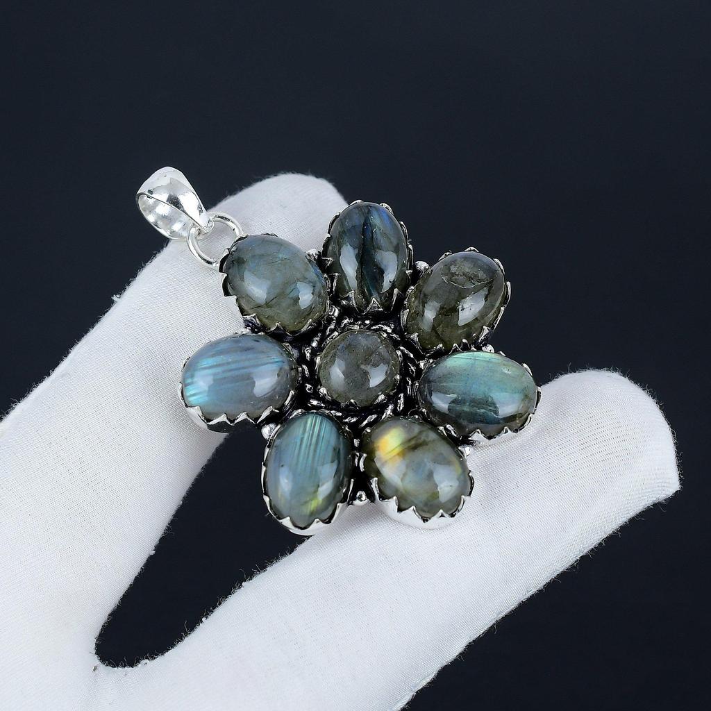 Natural Labradorite Gemstone Silver Flower Pendant In 925 Sterling Silver - Handmade Pear Design, Everyday Wear Jewelry Mother's Day Gift