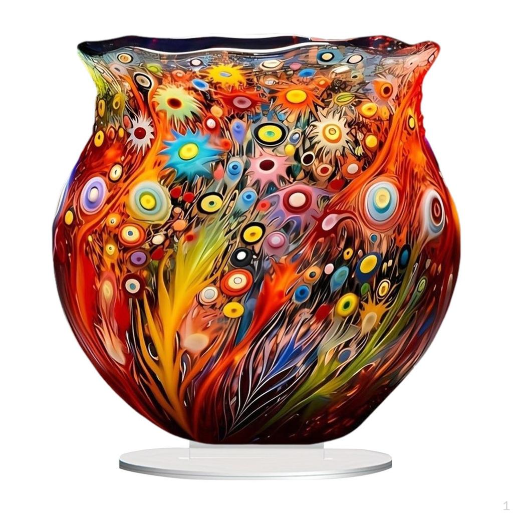 - 【Product】: This 2D Acrylic Ornament features a colorful and dreamy flower vase design, ideal for adding a touch of whimsy to any home or office setting