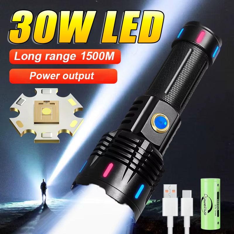 Strong Light LED Flashlight Long Shot 1500M Powerful Torch Light With Fluorescent Lights Zoomable Lantern Outdoor Camping Fishing Flashlights