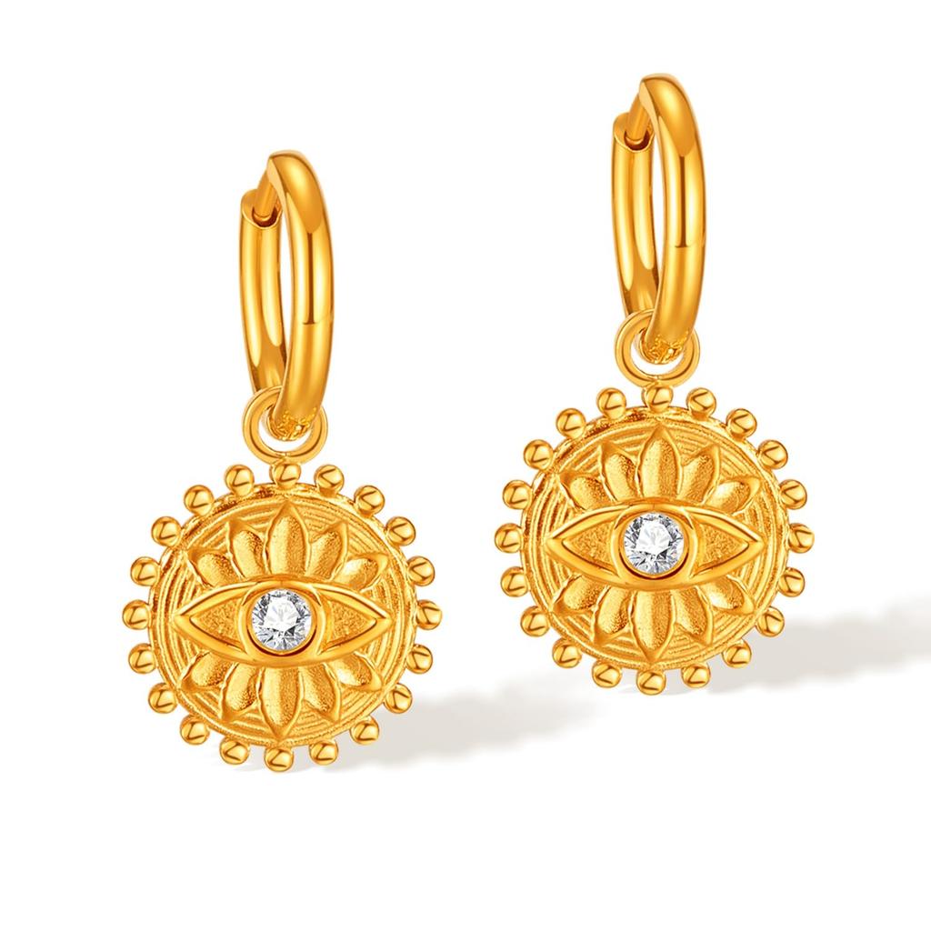 Retro Design Cubic Zirconia Embedded Tiger Eye Stainless Steel Earrings Fashion Temperament Women's