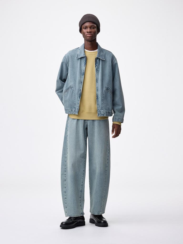 GU Barrel Leg Jeans feature a relaxed tapered silhouette with an eye-catching dark gray color. It has a convenient 5-pocket design with a front button and zipper closure.