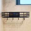 1pc Storage Rack With Hooks For Kitchen Bathroom Bedroom Office, Wrought Iron Bathroom Shelf, Punch Free Hanging Shelf