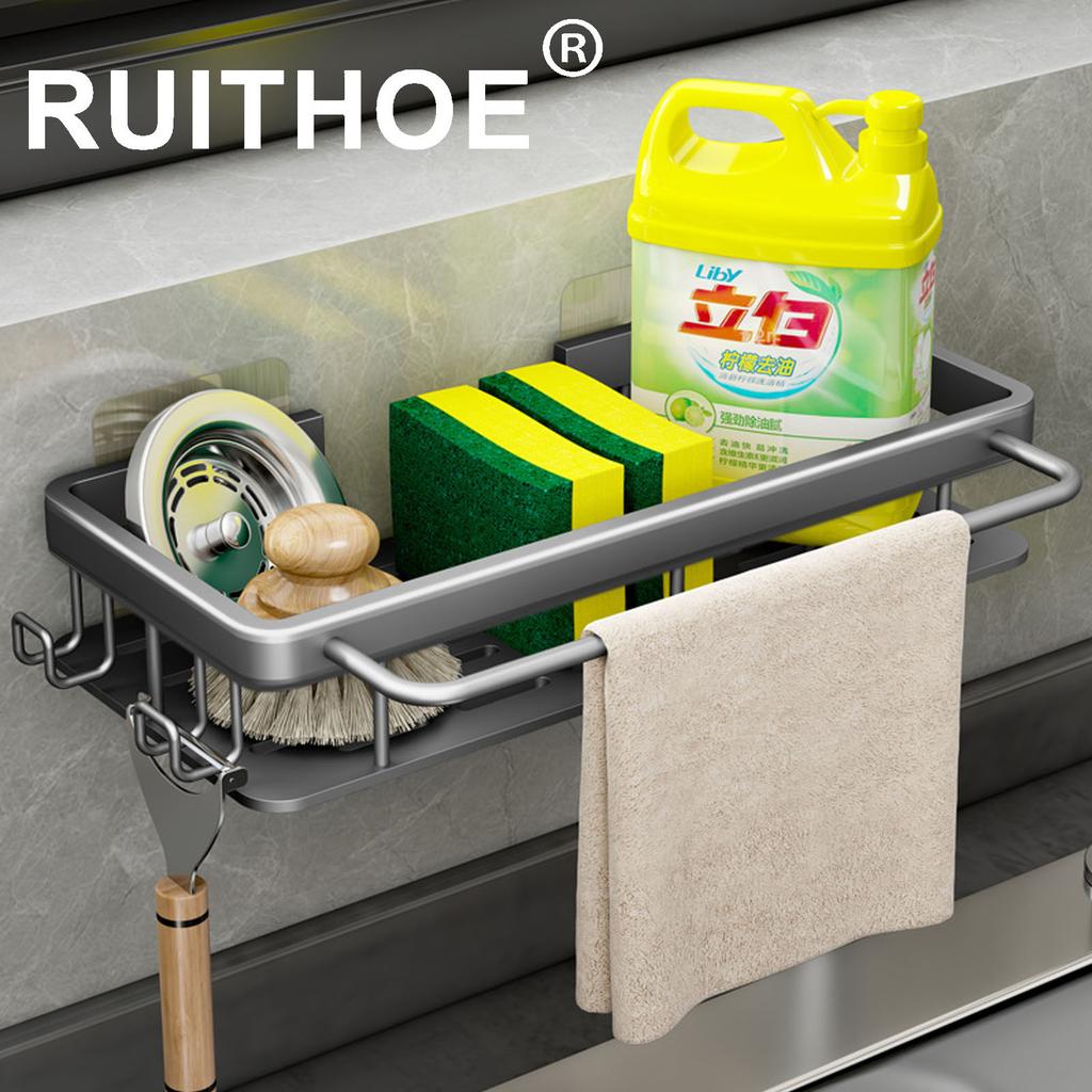 Wall Storage Suspended Kitchen Sink Drainer Sponge Holder Kitchen Soap Rack No Drill Shelf Storage And Kitchen Organization