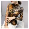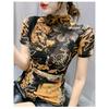 Mesh Hollow Short-sleeved T-shirt for Women's Spring and Autumn New Base Shirt Printed Top Sexy Half Turtleneck Shirt