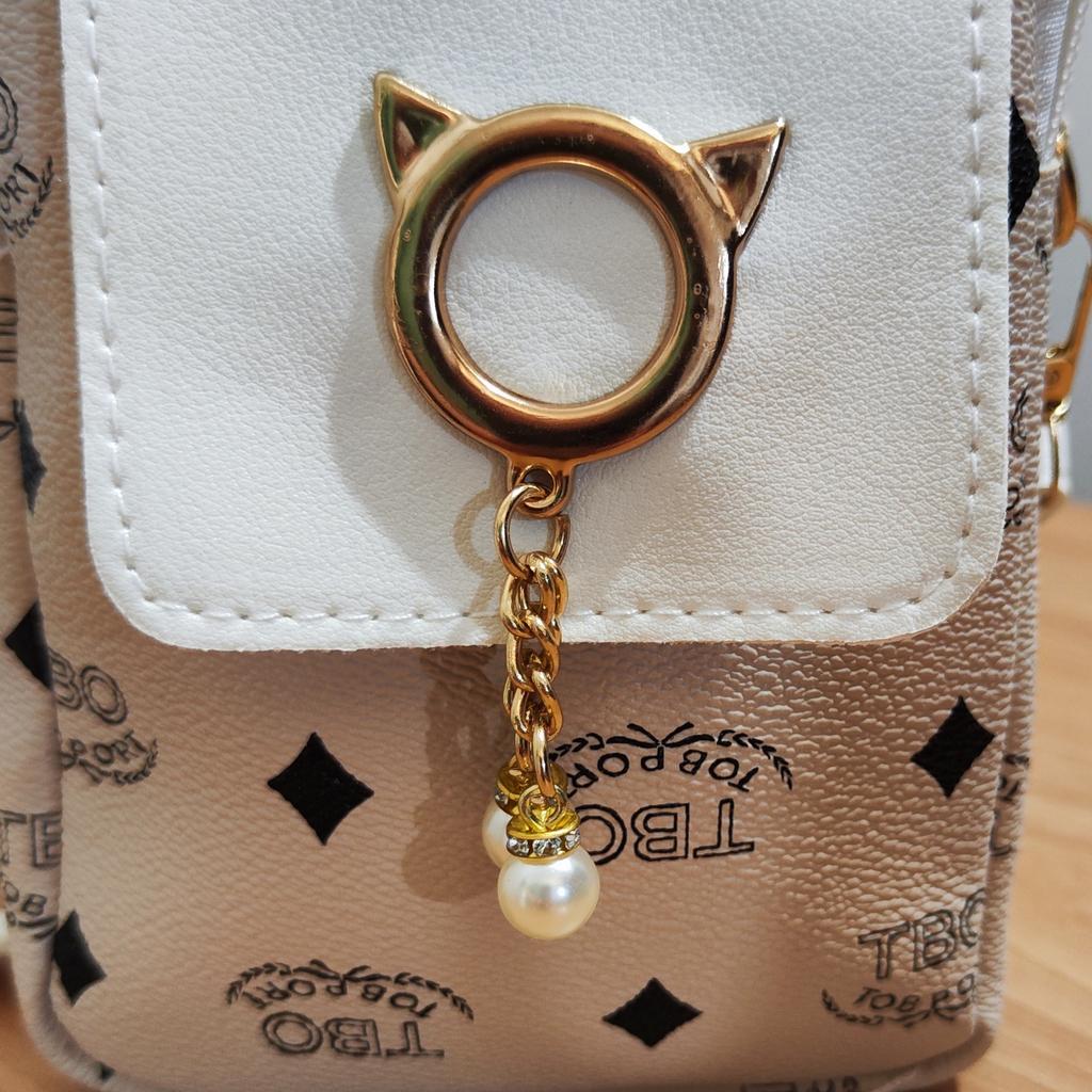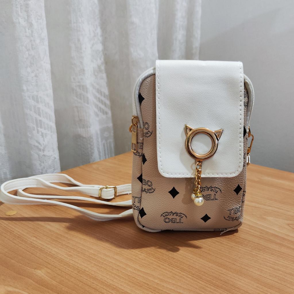 Women's mobile phone bag The bag has a new and modern design.. It is square in shape, with a shoulder handle.. The bag is high quality and well made. With cute cat prints and buckle.. The bag is very beautiful and you can choose it in several colors.. I chose white in gray and it is perfect.! Highly recommend buying! It arrived to me with fast and secure delivery📦