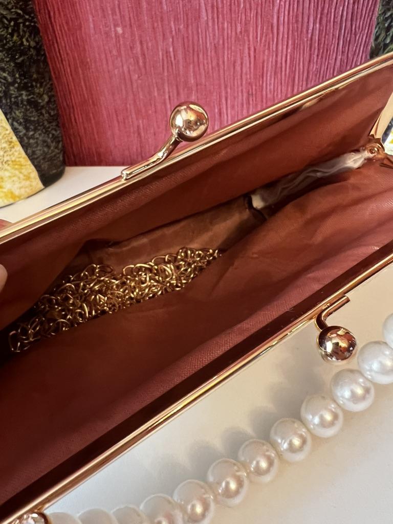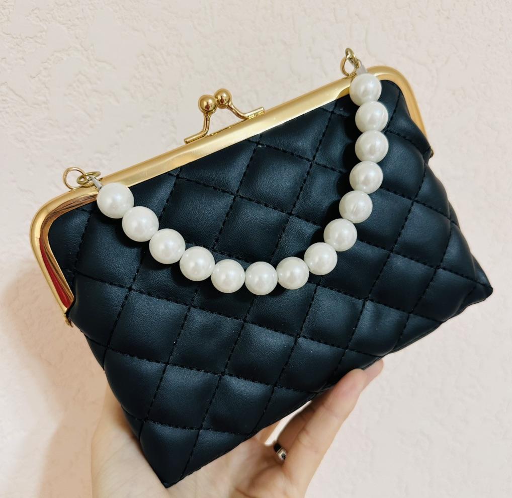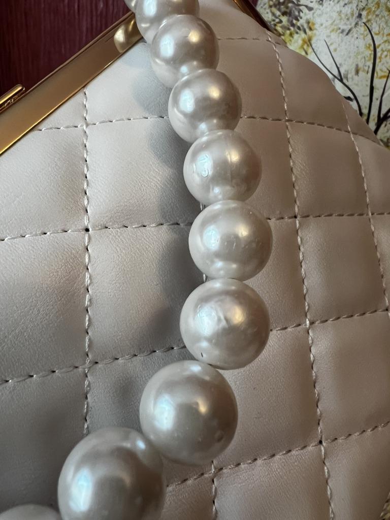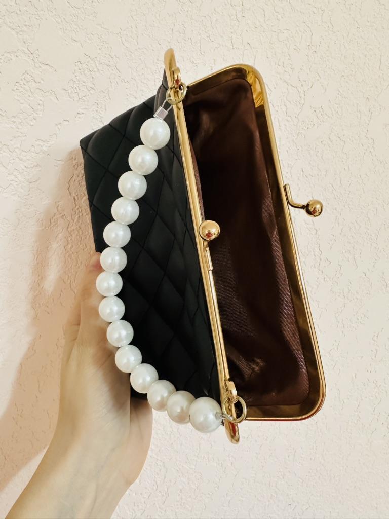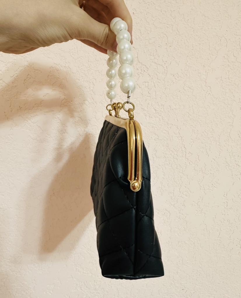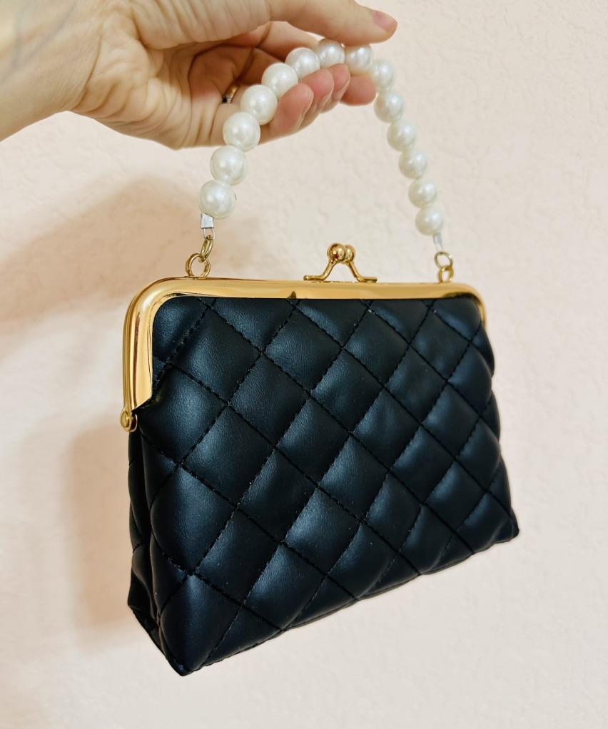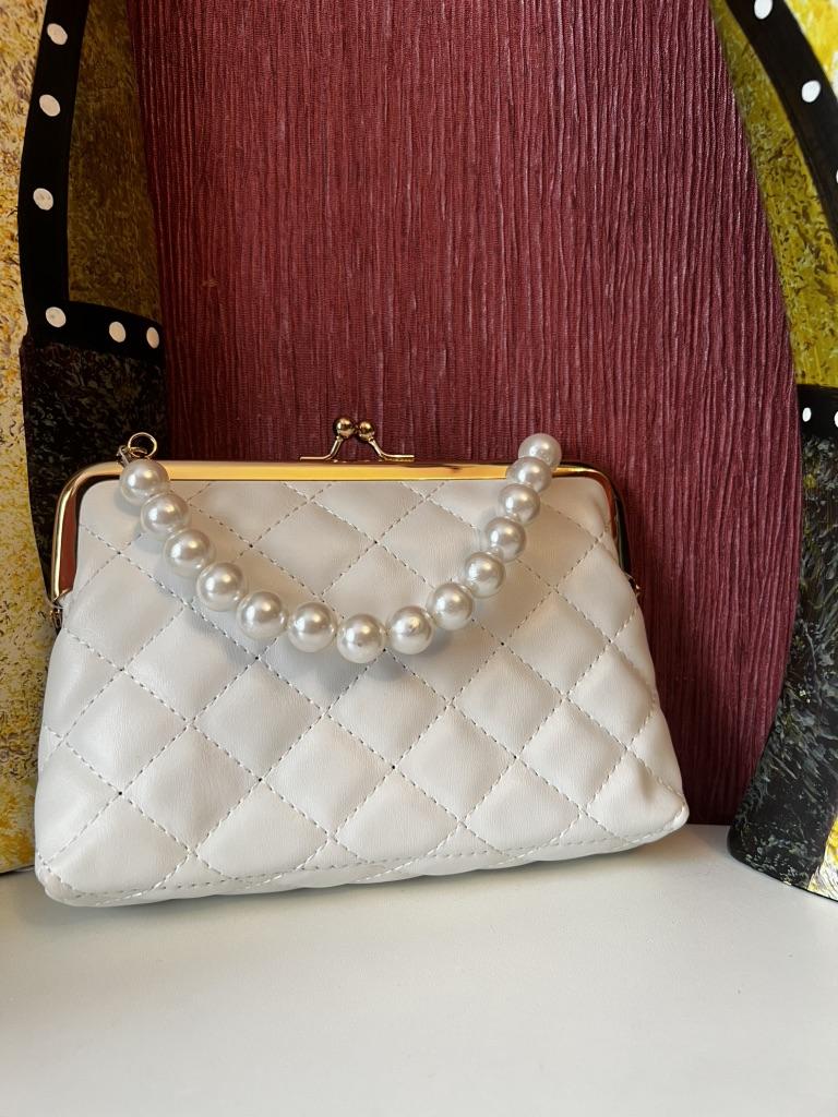 HAND BAG small elegant handbag, perfect for a ceremony, a party, a dinner. The bag has no internal pockets, it is lined. Gold metal closure. Available in 5 colors, Material: Quilted polyurethane. Super chic detail: the pearl handle...... Beautiful 😍😍😍 The seams are neat, no bad smells. There is also a small removable gold metal shoulder strap if you prefer without it.. Arrived in Italy in 21 days with tracked shipping. Packaging: cellophane wrap. Recommended purchase. Excellent value for money.