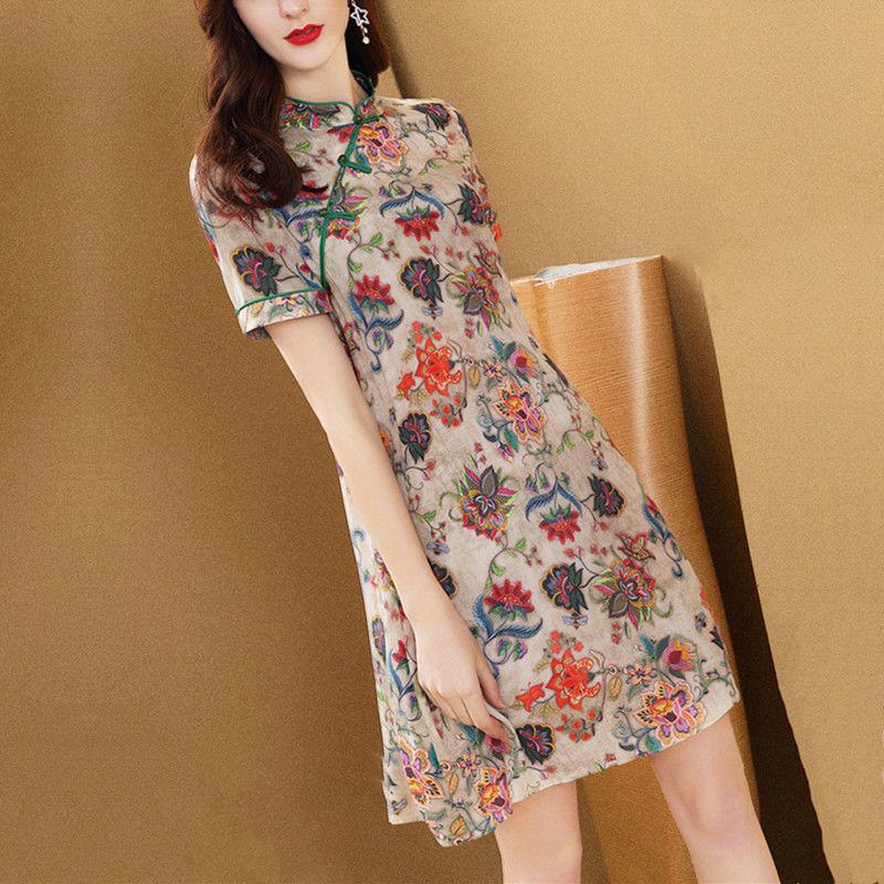 Elegant Summer Qipao Style Silk Dress with Tummy Cover and Stylish Mulberry Silk for Women