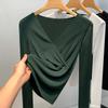 Cross V-neck Mesh Base Shirt for Women In Spring and Autumn New Tight Long-sleeved T-shirt for Women In Women's Unique Waist-hugging Shirt