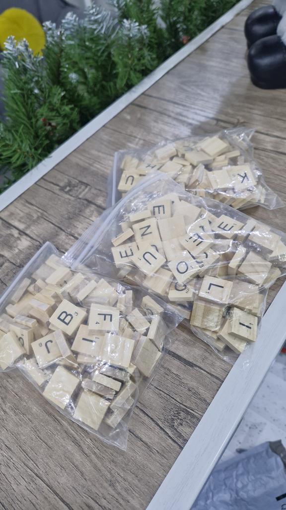 100pcs Puzzle Tiles Letters Alphabet Wooden Pieces Numbers Pendants Spelling