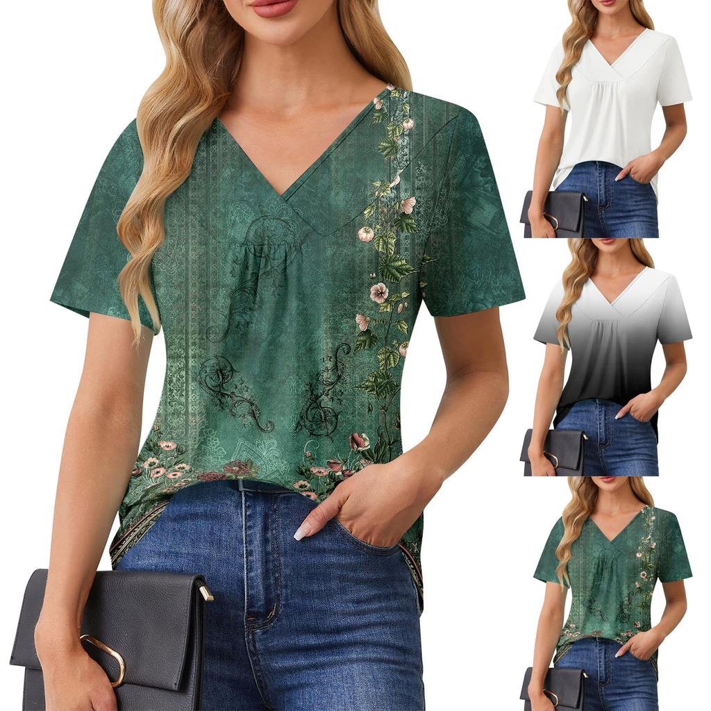 Womens Summer Tops Casual Ruffle Short Sleeve Crewneck Loose Pleated T Shirts