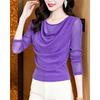 Round Neck Bright Silk Long Sleeve Pullover T-shirt for Women In Autumn New Style Celebrity Top Fashionable Base Shirt