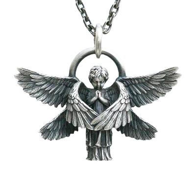 Vintage Punk Silver Color Angel Wings Pendant Necklace Men Women Statement Punk Street Accessories Sweater Chain Trend Jewelry