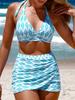 New High Quality, Comfortable, Sexy Women's Chinese Vintage Printed Swimsuit and Swimming Skirt Set of Two S-6XL