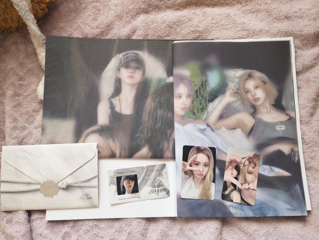 this is actually so cuute but the album's "photobook" being in this form... its so weird and inconvenient+ I can't even put it on the wall as the poster, as it is stapled together😭😭 the inclusions are so cool tho! but i don't understand why did they make 2 same posters when theres 2 concepts.... photocards are magnificent 💜💜 still can't believe i got the set for so cheap~