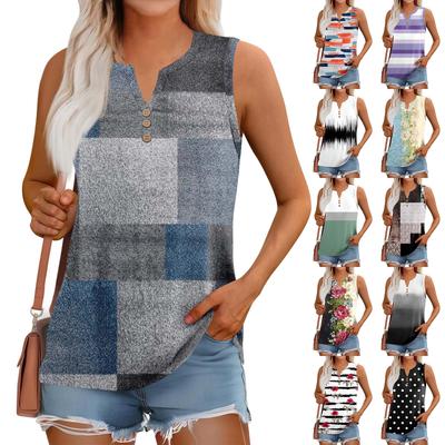 Women's T Shirt Tee Print Button Sleeveless Daily Weekend Fashion Basic V- Neck Regular Top