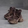 Johnature Vintage Genuine Leather Splicing Mesh Breathable Hollow-out Boots Women's Platform Shoes