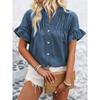 YYFS Women's Fashion Casual Summer Spring Solid Color Print Short Sleeve V-Neck Blouses & Shirts