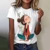 Summer Women's T Shirt Anime Girl Pattern Print Casual Short Sleeve Pullover Fashion Streetwear Cute Girl Tee Female Clothing