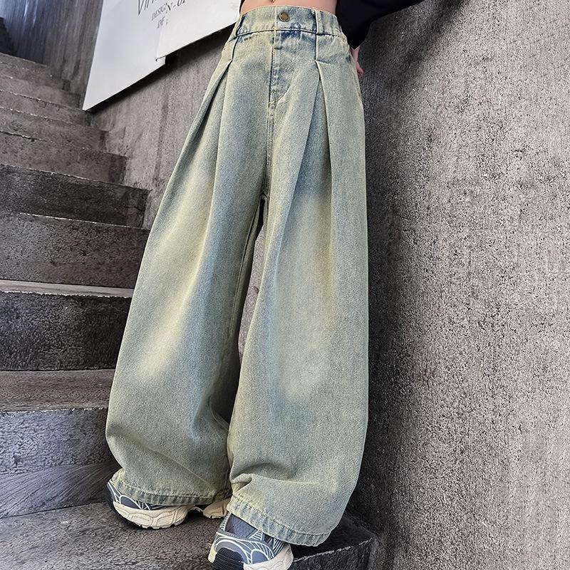 Kids Girls Jeans Spring Autumn Junior Children Westernized Street Wide Leg Pants Korean Versatile Long Trousers Clothes