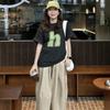 Korean Vintage Black Letter Print Short Sleeve T-shirts for Women 2025 Summer Casual Loose Women's T Shirt Harajuku Streetwear Tshirt Female Y2k Tops