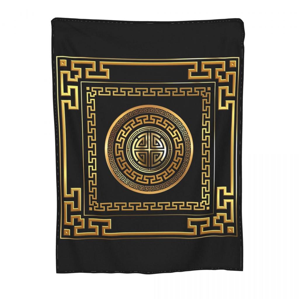 Greek Key Meander Black Gold Large Blankets Velvet Spring/Autumn Portable Super Soft Throw Blanket for Sofa Car Bedspread