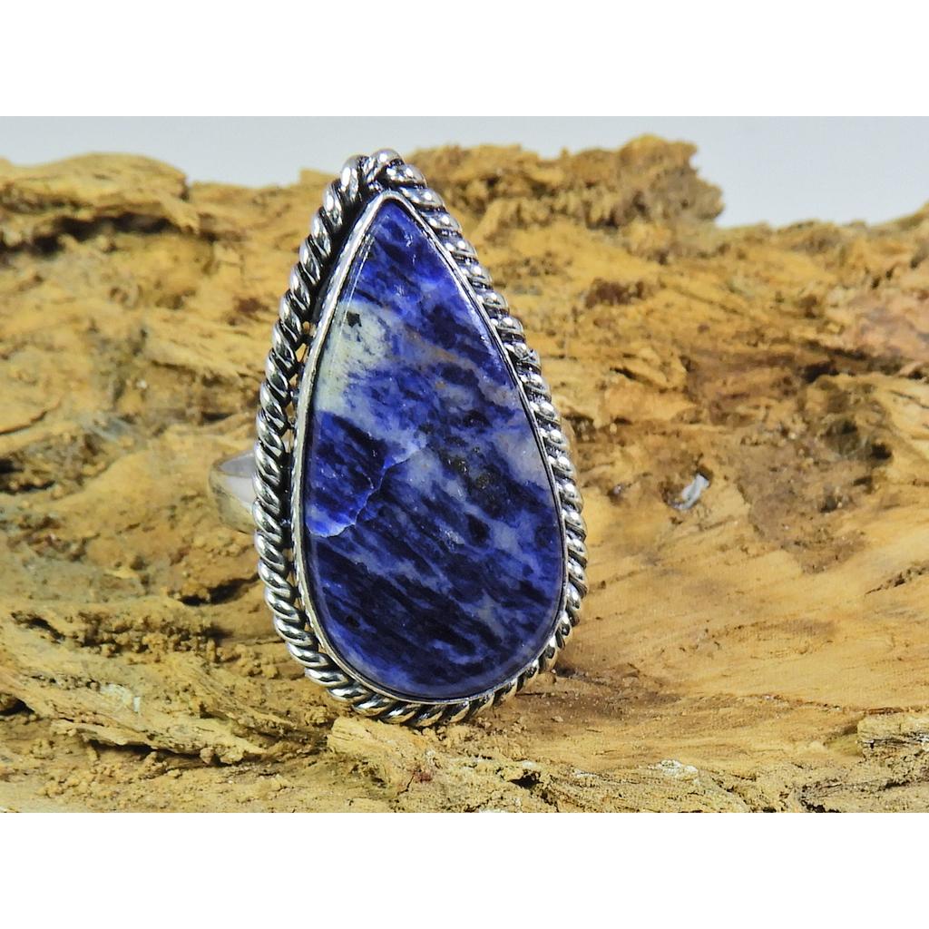 Natural Blue Sodalite 925 Solid Sterling Silver Ring Size US-9 PG-130