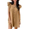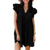 Fashion V-neck Ruffled Short-sleeved Dress Summer Solid Color Loose Shift Dress