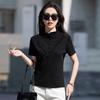 Summer Women's Stand-up Collar Lace Cotton Slim Thin Short-sleeved Versatile Temperament T-shirt