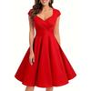 New Women's Retro V-neck Fashionable Light Luxury Elegant Half Sleeve Waist Solid Color Big Swing Dress