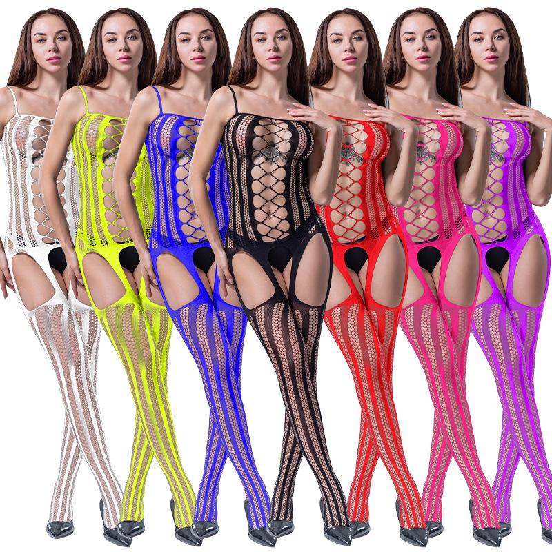 Hot Sale: Vertical Stripe Mesh Dress with Suspender Chest Wrap, Hollow Socks, and Open Crotch Pajamas.