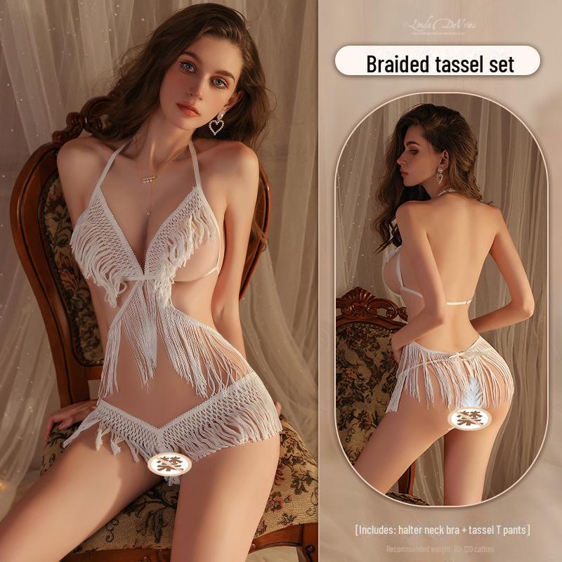 Manyan Cotton Tassel Halter Neck Lingerie Pajama Set