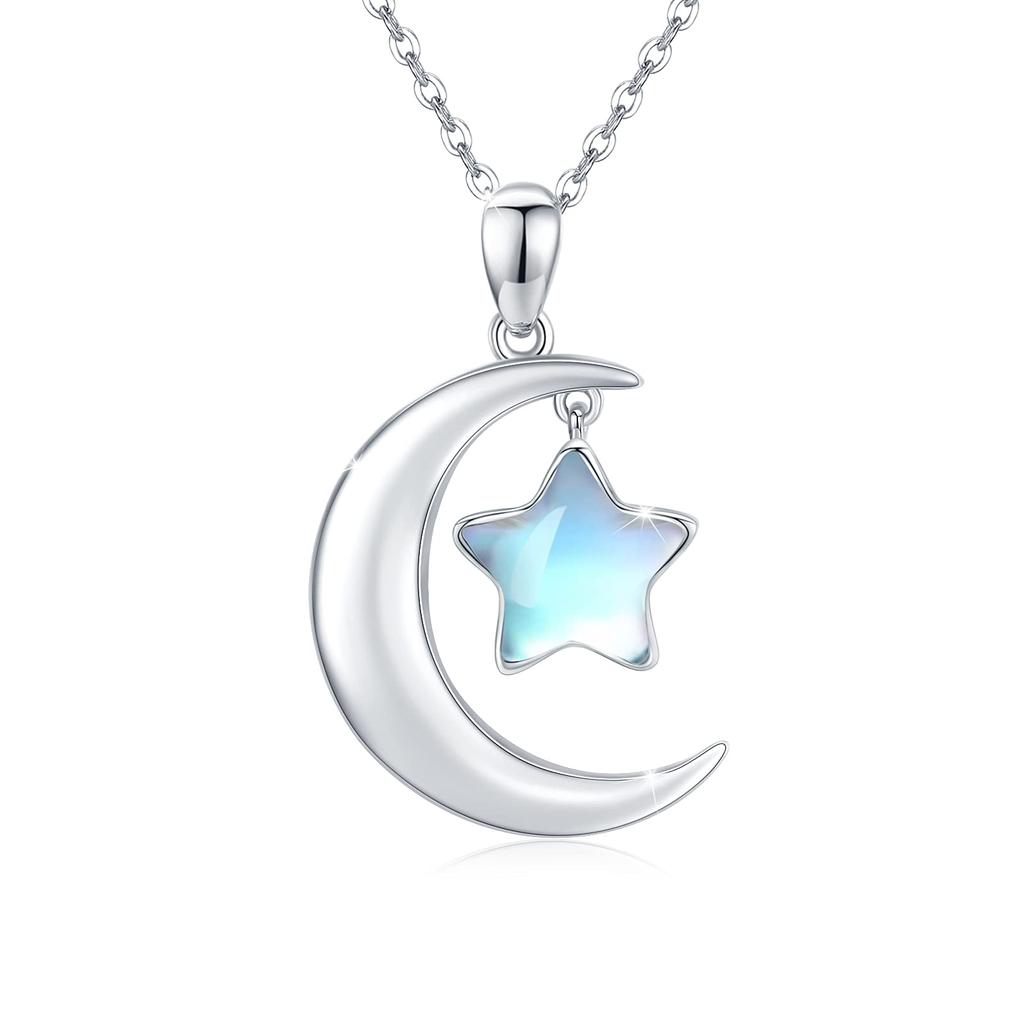 CUOKA MIRACLE Moonstone Necklace Moon Star Necklace 925 Sterling Silver Crescent Moon and Star Pendant Necklace Synthetic Rainbow Moonstone Star Moon