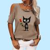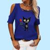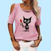 Women Fashion Off Shoulder T-shirt Ladies Casual Round Neck Print Top Summer Short Sleeve Tee Shirt