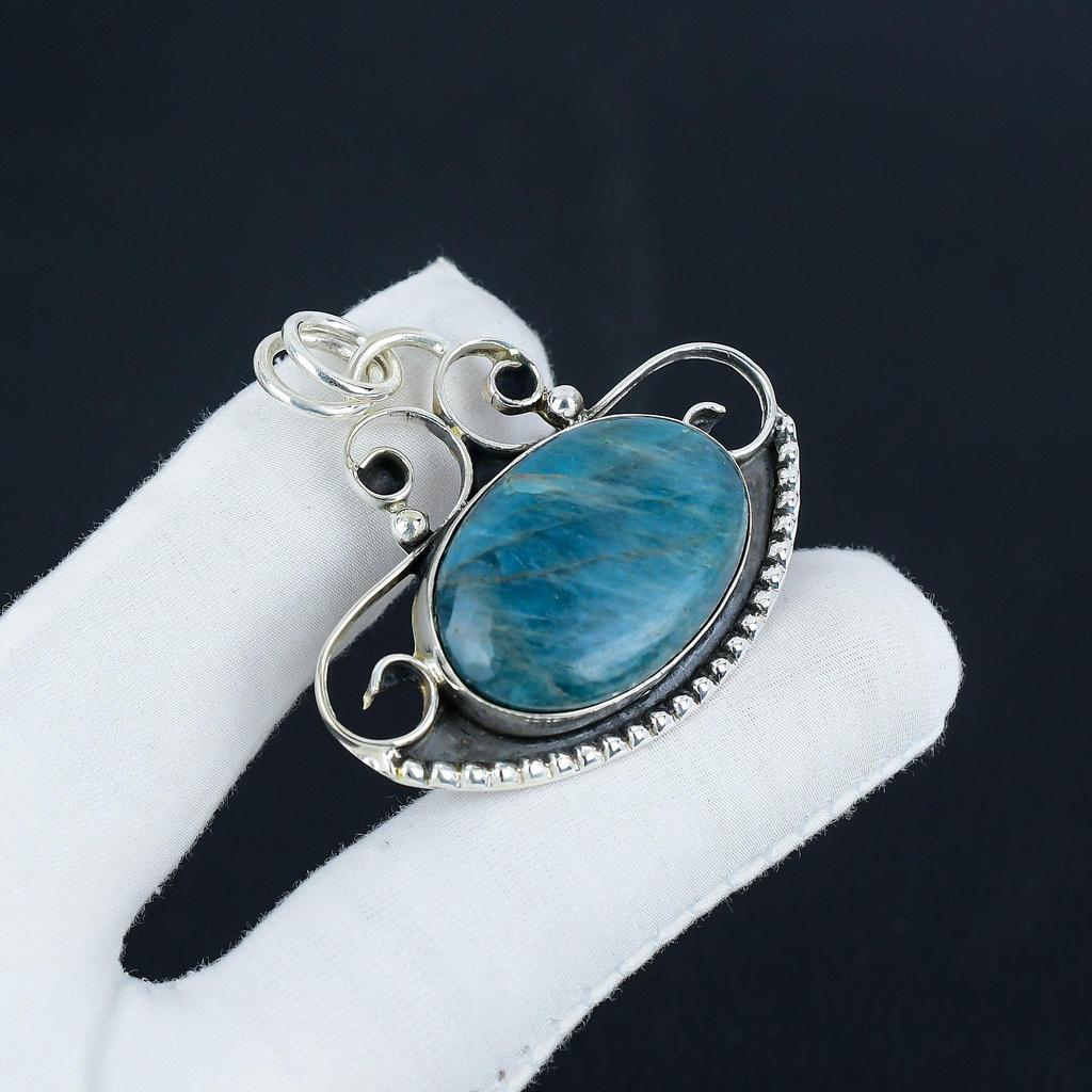 Natural Blue Apatite Gemstone Silver Pendant In 925 Sterling Silver - Handmade Design, Everyday Wear Jewelry Anniversary Gift
