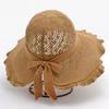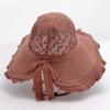 WTEMPO Women's Hollow-out Breathable Bow Wide Brim Sun Hats Solid Color Elegant Casual Foldable Summer Outdoor Sunscreen Hats
