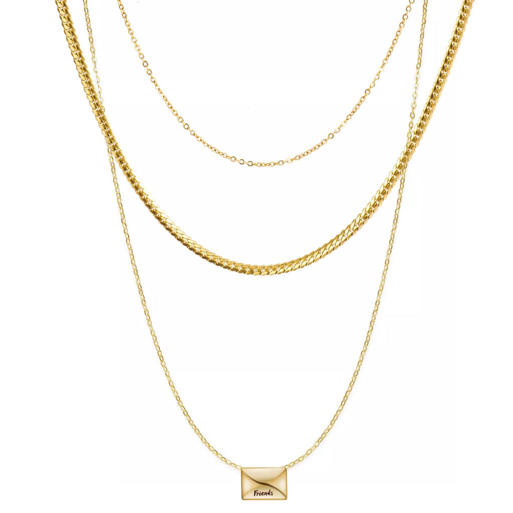 French Delicate Stacked Clavicle Chain Stainless Steel Flat Snake Chain Gold Envelope Pendant Titanium Steel Necklace Jewelry Set