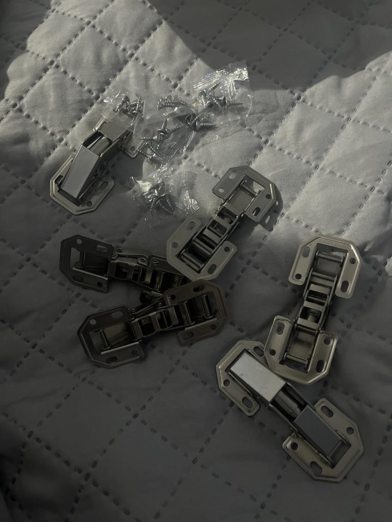 The product arrived in full configuration. As I ordered. Thank you to the seller for the good packaging. But I expected them to be sturdier. Also, the screws are very fragile, and the spring is quite stiff. I'm afraid they will tear out of the doors. But still, I hope they will prove themselves.
