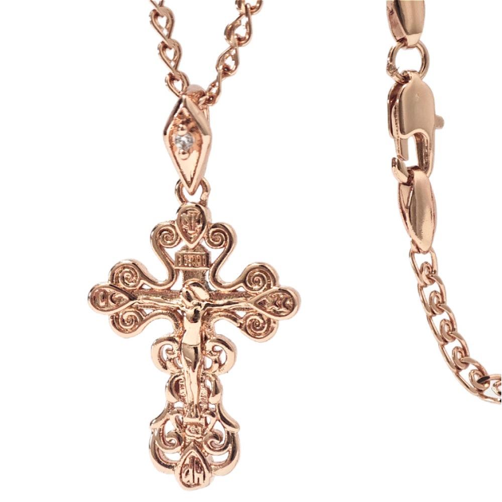 Hollow Cross Jesus Pendant Rose Gold Color Necklace Women's Color-preserving Jewelry