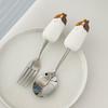 Cute Cartoon 304 Stainless Steel Children's Spoon & Fork Set - Anti-Fall & Durable Baby Tableware