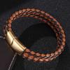 Vintage Stainless Steel Metal Clasp Men Jewelry Two Layers Genuine Leather Bracelet Brown Charms Wristband