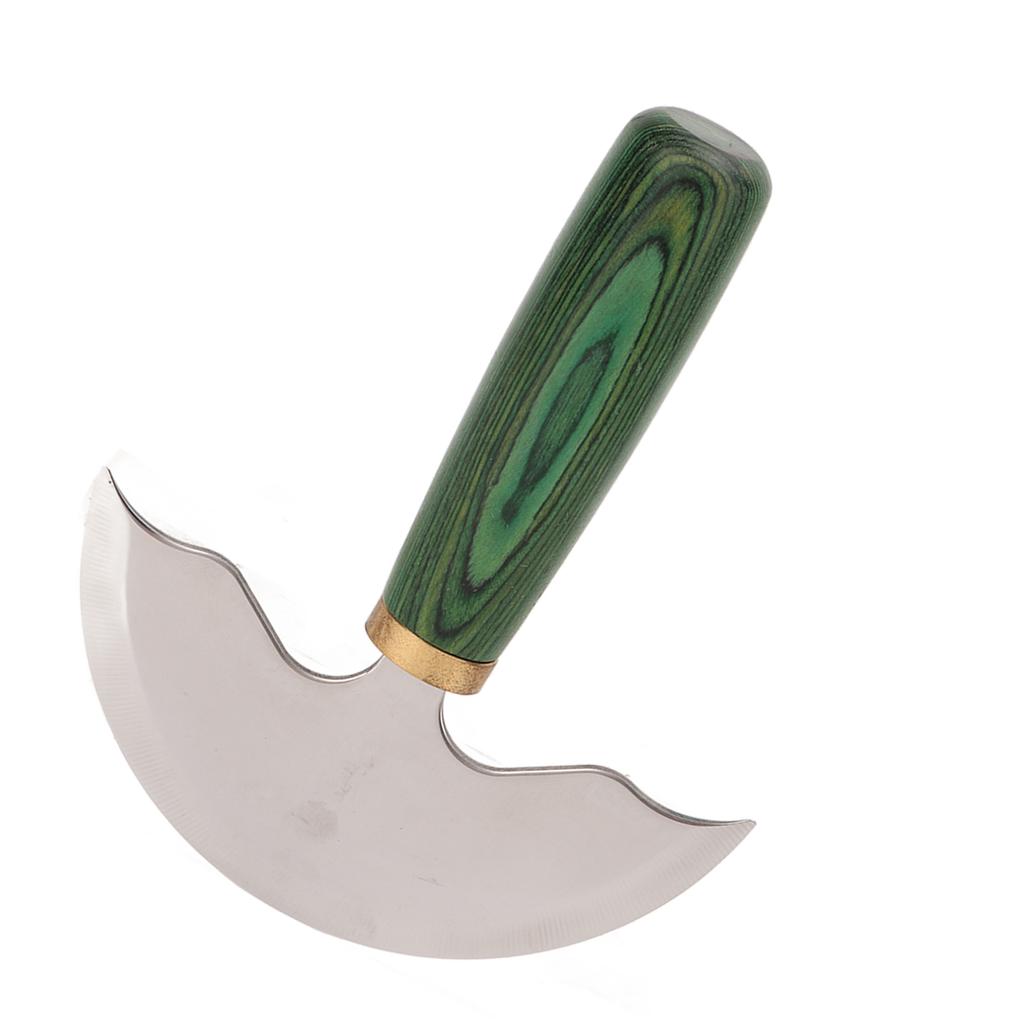 Leather Round Head Knife Semicircle Green Wooden Handle Hand Made DIY Leather Trimming Knife