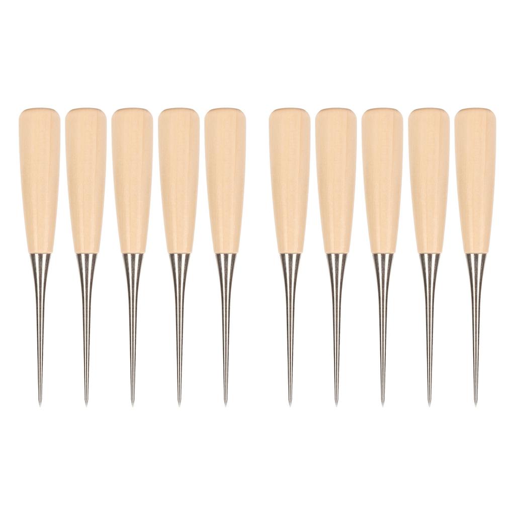 Wooden Handle Awl Punch Stainless Steel Awl Leather Scratch Awl for DIY Sewing Leather Punch Book