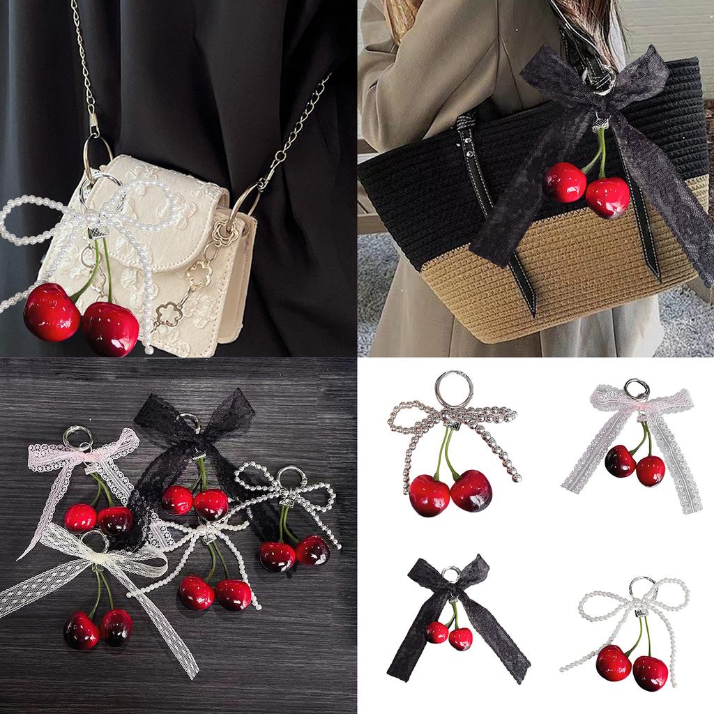 Cherry Pendant Keychain With Bowknot Fashionable Cherry Keychain with Pearlescent Bowknot Accents for Trendsetters