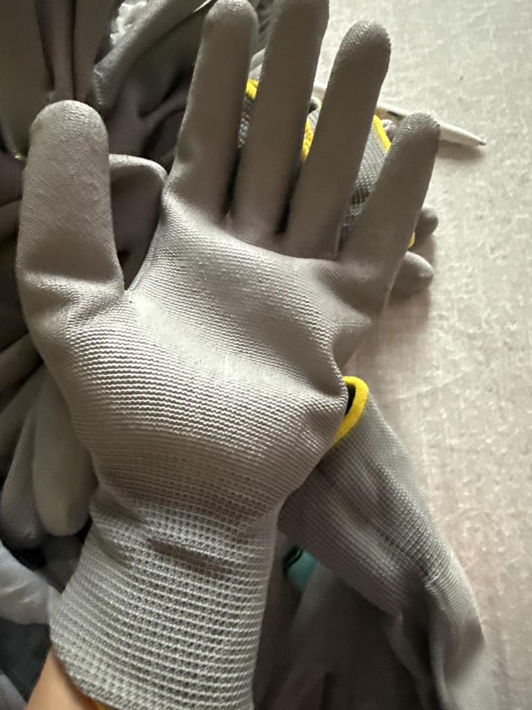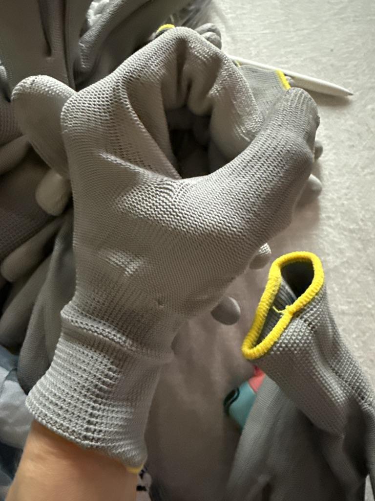 The gloves are comfortable, but the coating is rough, keeping them clean is not easy..