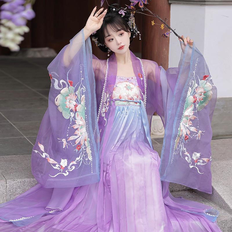 Hanfu New Embroidered Qi Skirt Tang Style Big Sleeve Cardigan Adult Women's Spring and Summer Thin Suit