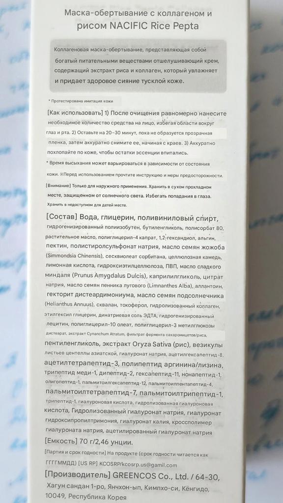 NACIFIC RICE PEPTA COLLAGEN PEEL-OFF WRAPPING MASK 70g + Brush