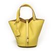 So the size is none of the 2 presented in the photos, the base is 15x20, and the opening 20x20, this is not stated anywhere in the listing. There is an insert, but it is smaller than the bag so I don't think it will be very useful as it won't protect the inside.. Otherwise pretty color and shape