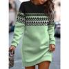 GMXIA Autumn Winter Women's Print Color Contrast Crewneck Hoodie Dress